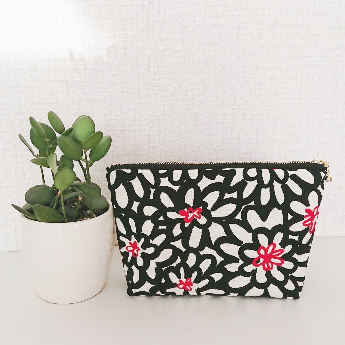 コットンフラワーポーチ♡黒