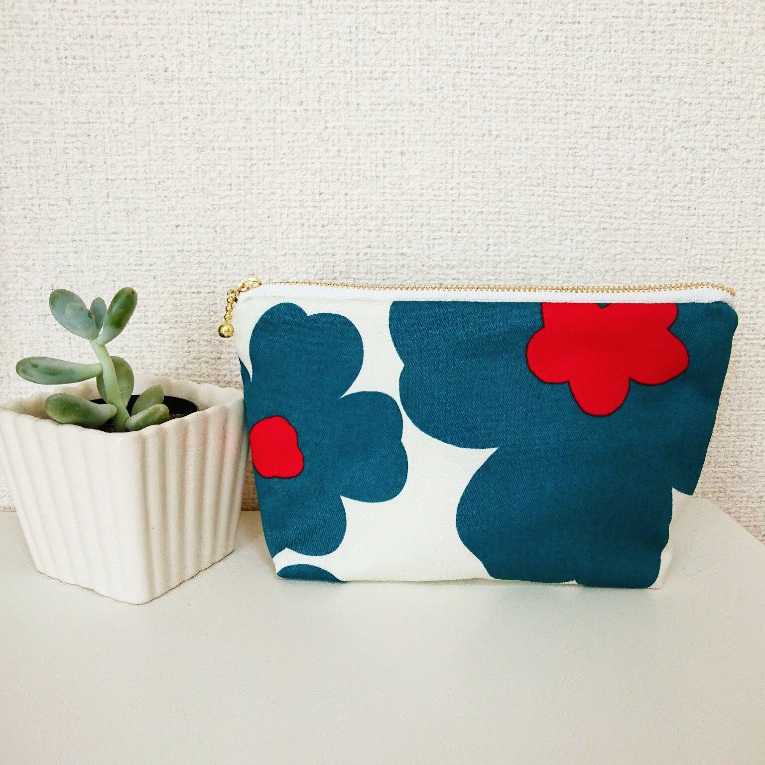 大柄お花ポーチ♡ブルー