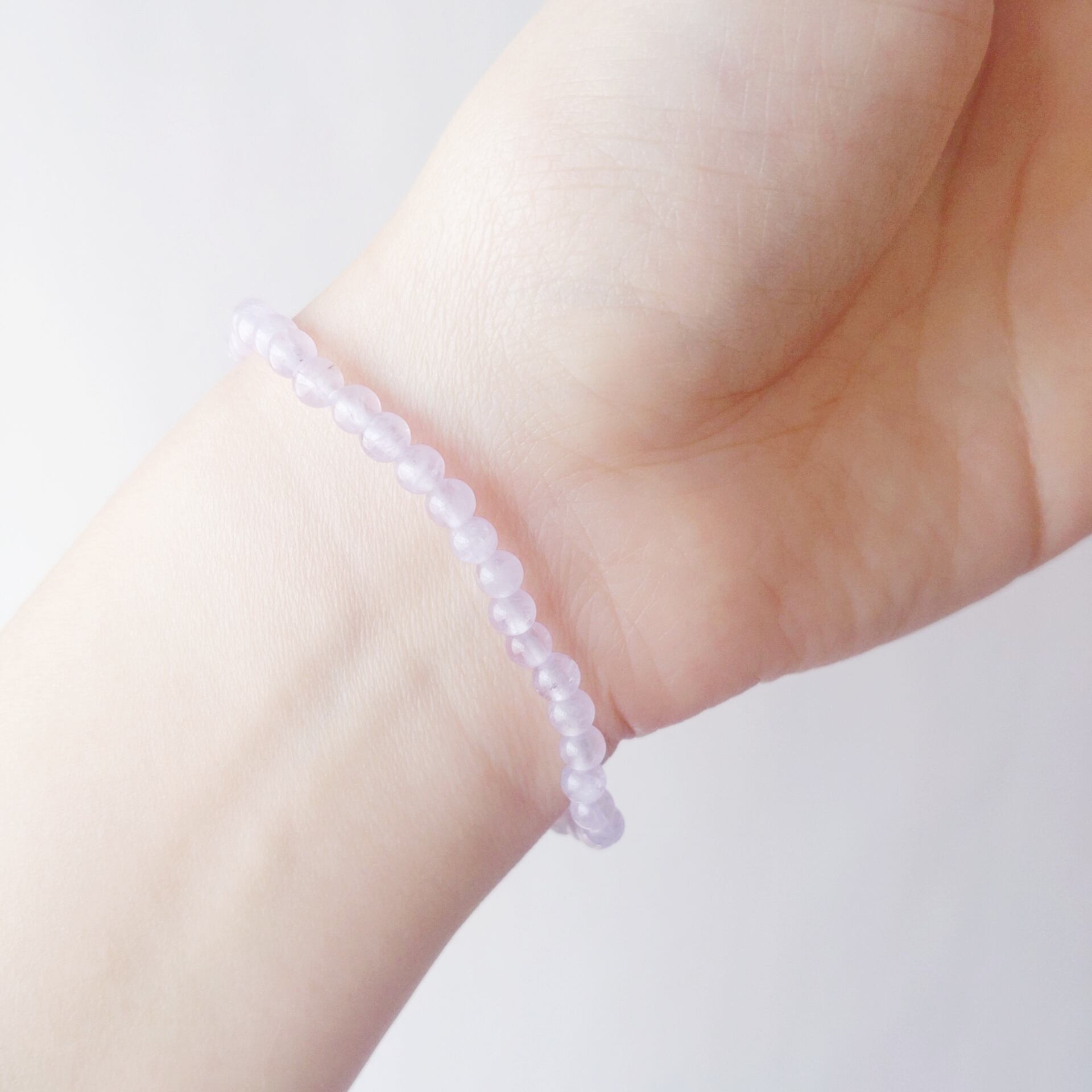 天然石は4mmを使用しておりますので、主張しすぎず、重ね付けにも丁度いい華奢なブレスレットになります。